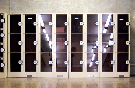 会場となる東京国立博物館本館特別5室前、及び寄贈者顕彰室内のコインロッカーを視察してきました。写真はメインの展示会場(予定)となる特別5室前のコインロッカーです。この向こうでダ・ヴィンチの受胎告知が展示されているわけです。3週間程前に受胎告知目当てで訪れた時には正門脇から長蛇の列が出来ていましたが、今日は平日ということもあってか、お客さんはすんなりと本館玄関口へと向かっていました。